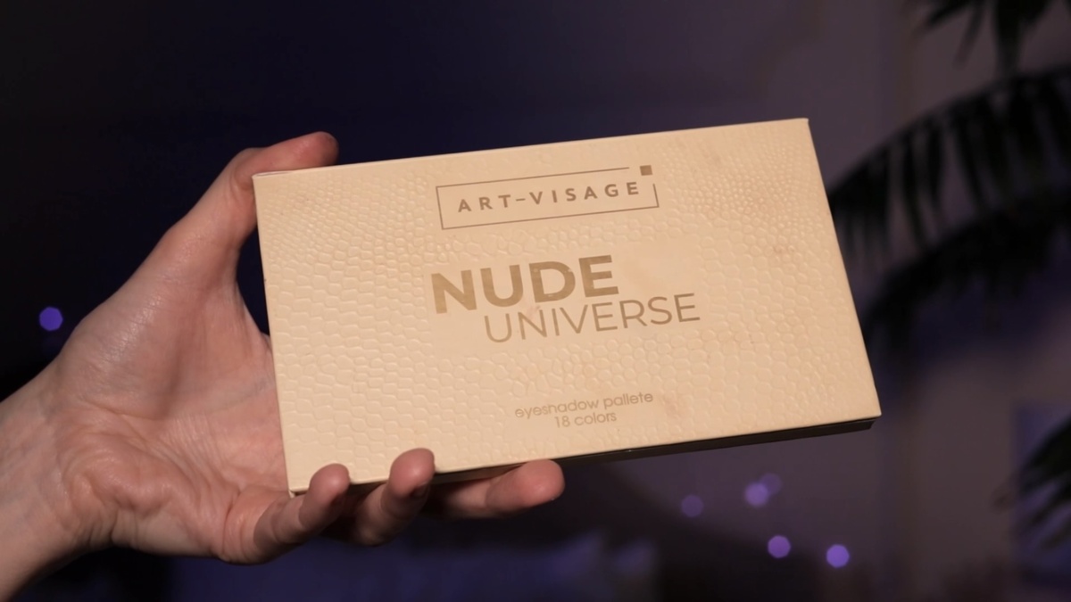 Для создания базовой дымки я беру свою любимую бюджетную палетку Nude Universe от Art-Visage. Ее оттенки обладают средней пигментацией, что делает их идеальными для новичков — с ними практически невозможно переборщить, и они прекрасно растушевываются.
