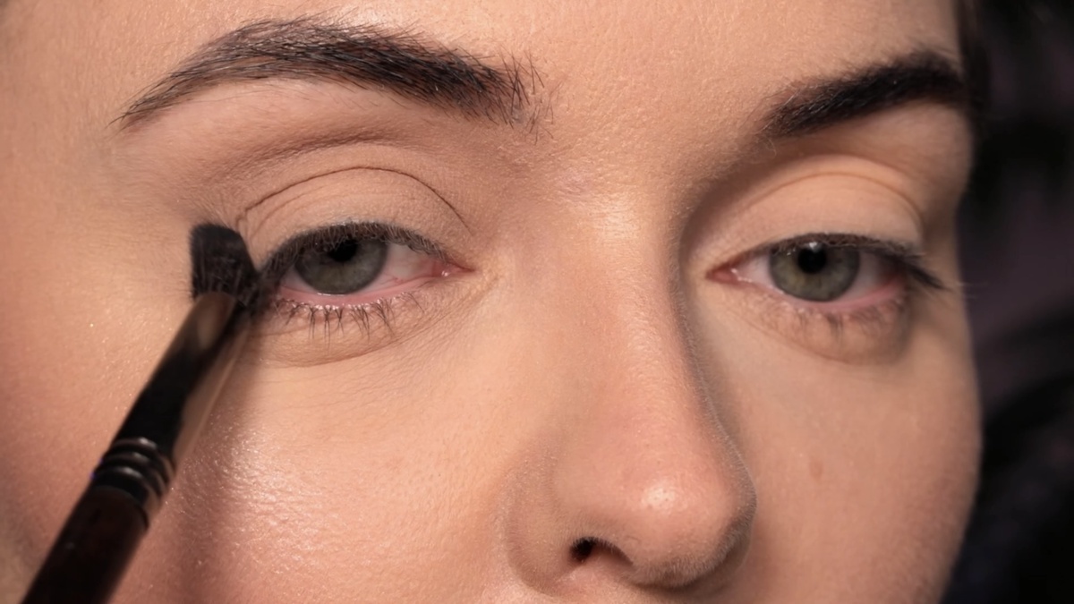 Затем тем же оттенком я затемняю пространство над складкой и внешний уголок подвижного века, создавая легкую дымку и визуальную глубину. Не забываю растушевать тени и на нижнем веке, протягивая цвет от внешнего к внутреннему уголку примерно на одну треть.