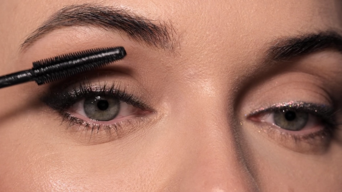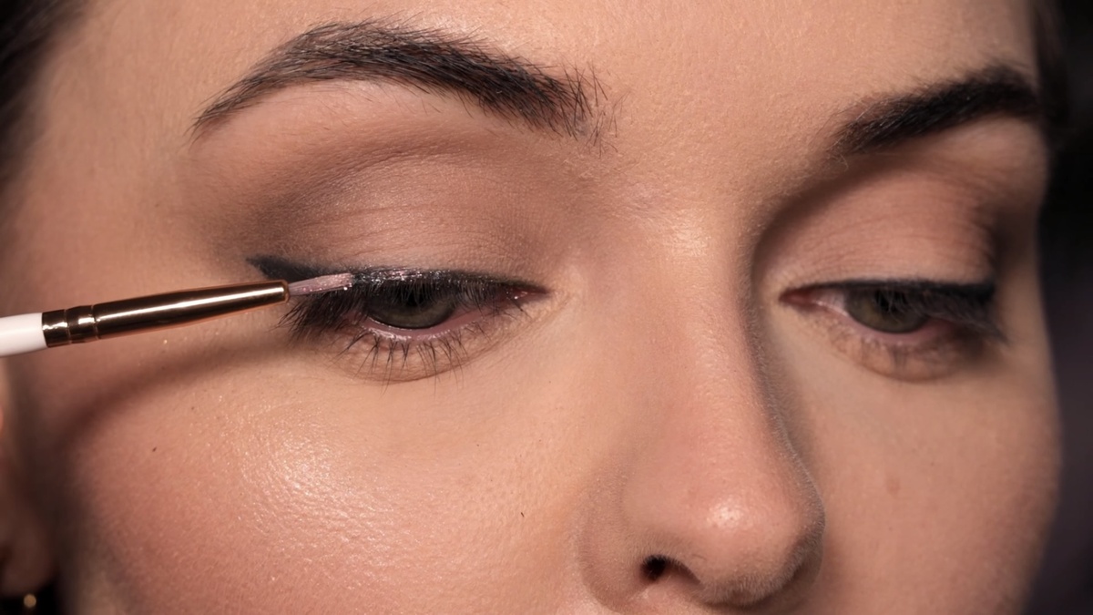 Теперь основа для блесток готова. Темная подложка под блестки — обязательное условие. Без нее блестки, нанесенные прямо на кожу, будут смотреться бледно и невыразительно, особенно в области линии роста ресниц.